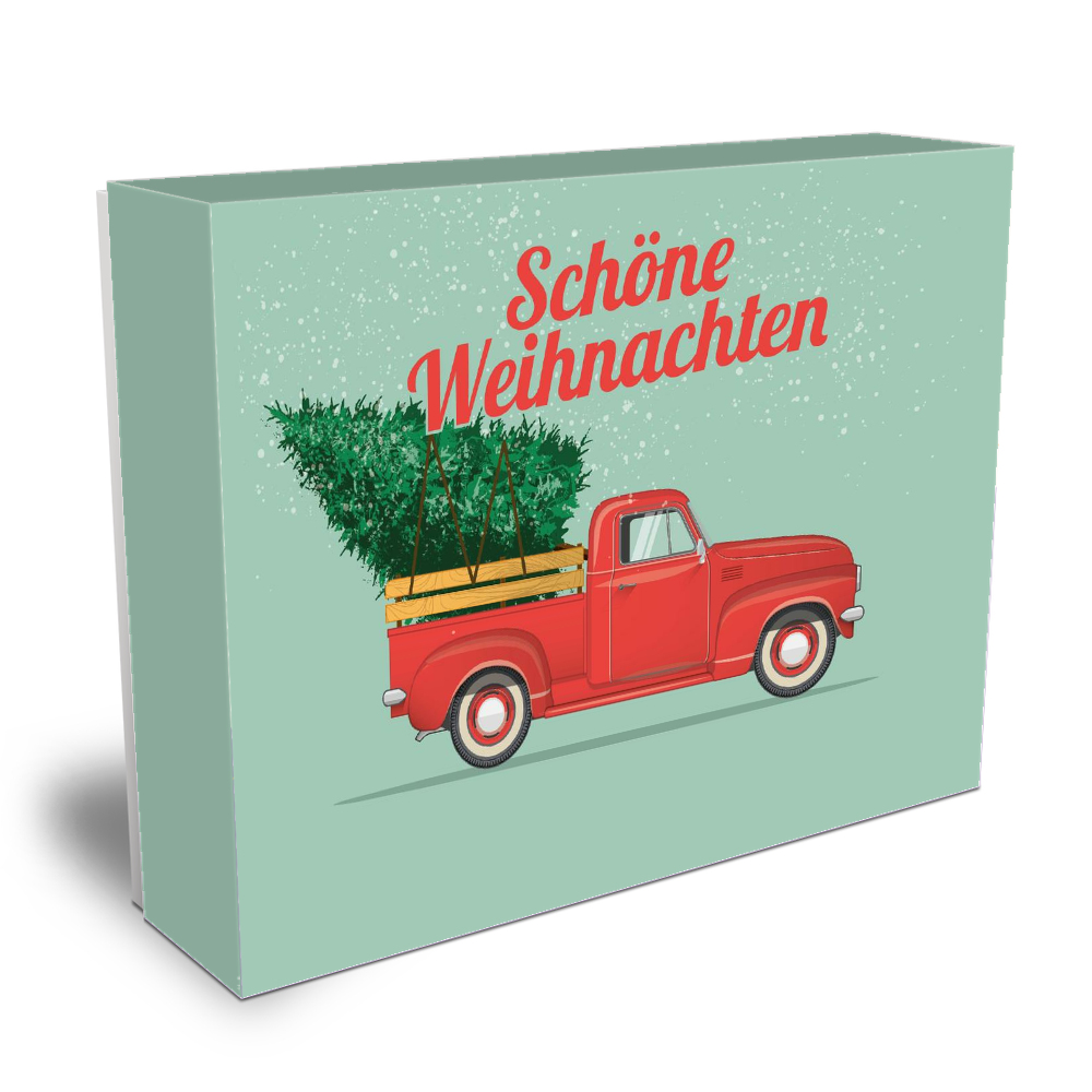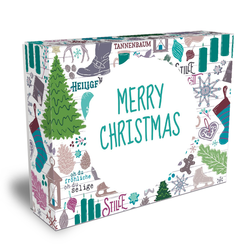 Gefüllt mit 33 fair-trade Schokoladen-Napolitains der GEPA.